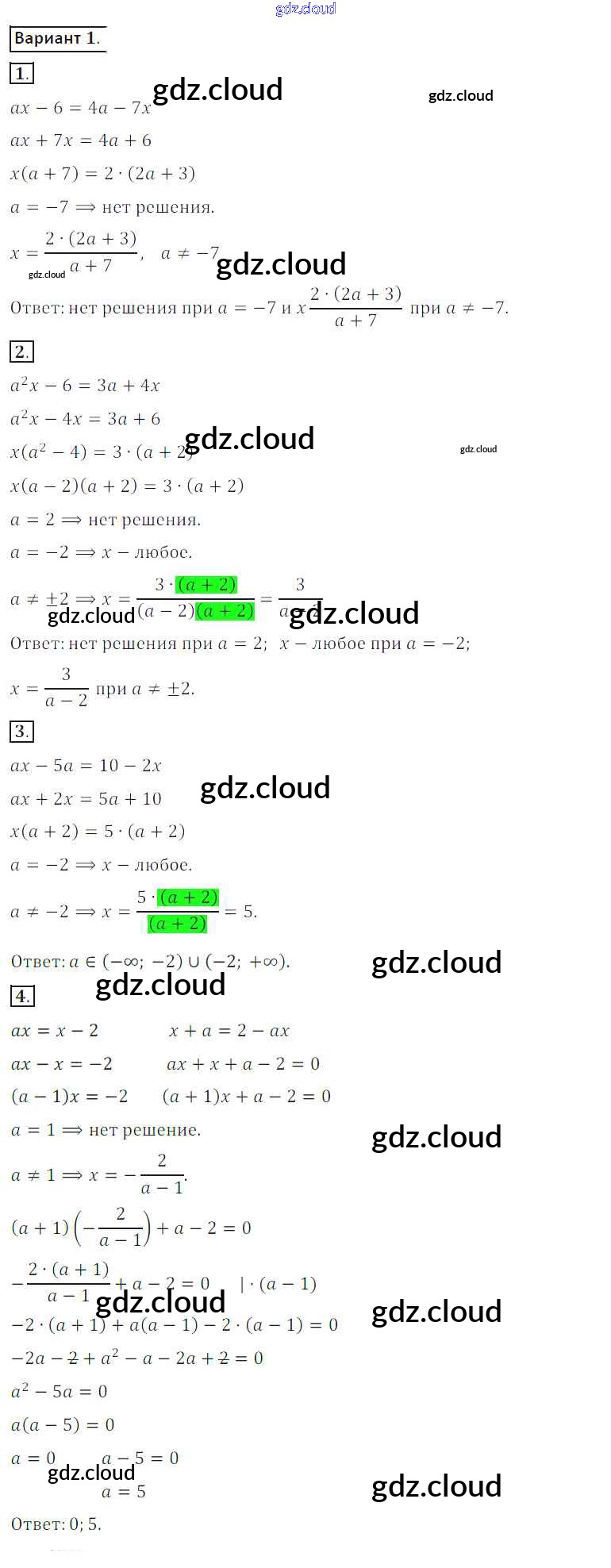 СР №12. Линейные уравнения с параметром Ответы к Самостоятельным работам по Алгебре 8 класс Дидактические материалы Потапов МГУ - школе Просвещение