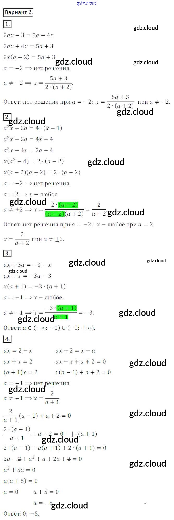 СР №12. Линейные уравнения с параметром Ответы к Самостоятельным работам по Алгебре 8 класс Дидактические материалы Потапов МГУ - школе Просвещение
