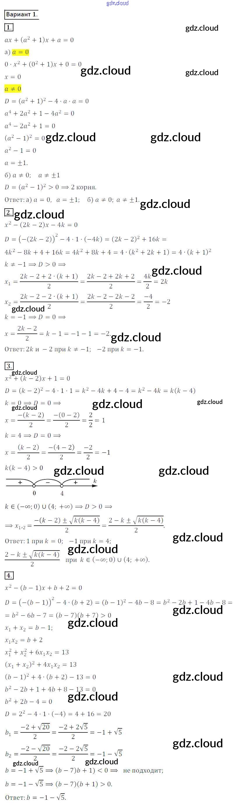 СР №13. Квадратные уравнения с параметром Ответы к Самостоятельным работам по Алгебре 8 класс Дидактические материалы Потапов МГУ - школе Просвещение
