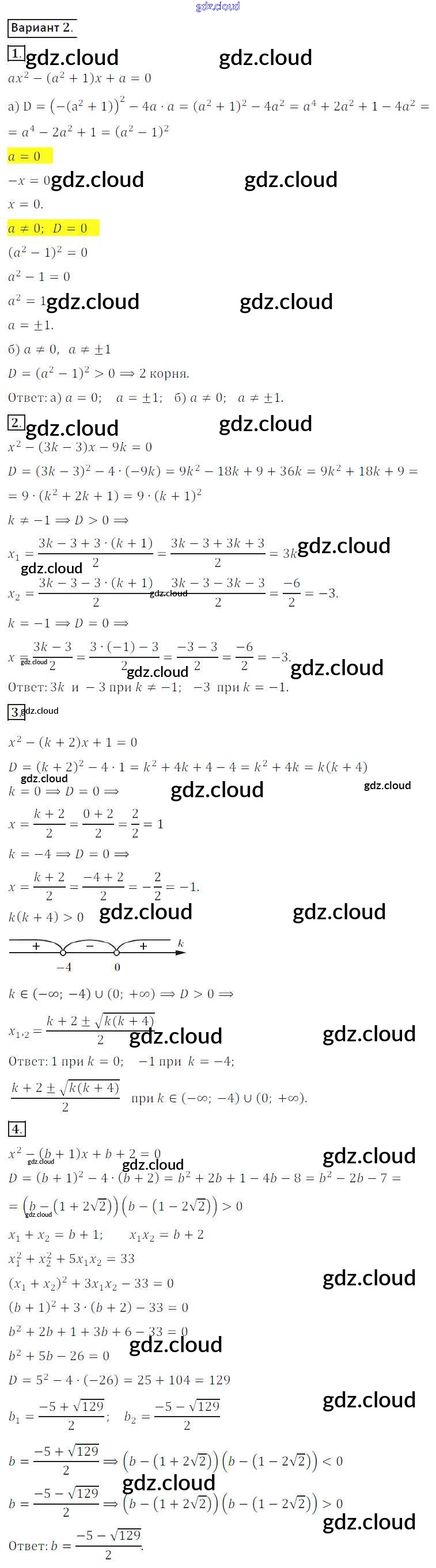 СР №13. Квадратные уравнения с параметром Ответы к Самостоятельным работам по Алгебре 8 класс Дидактические материалы Потапов МГУ - школе Просвещение