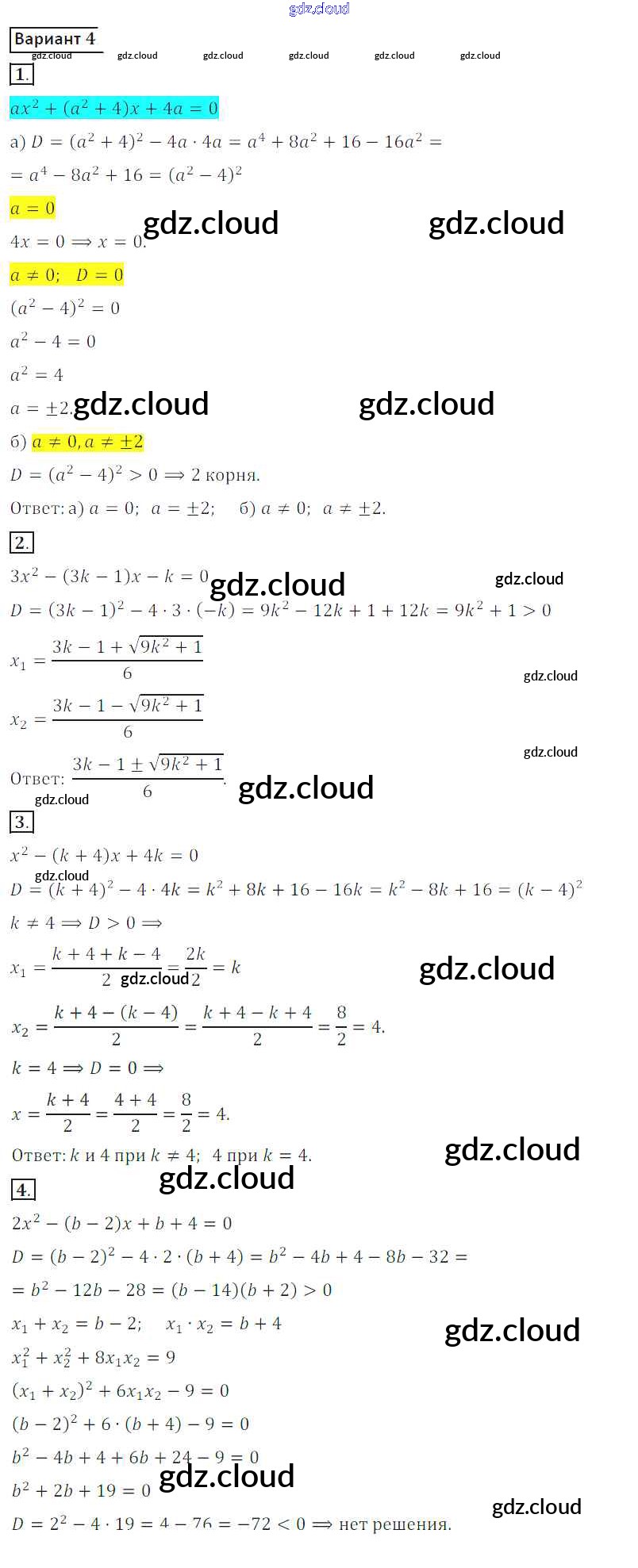 Ответ на задание вариант 4 Дидактические материалы Алгебра за 8 (восьмой) класс Потапов, Шевкин МГУ - школе 2017
