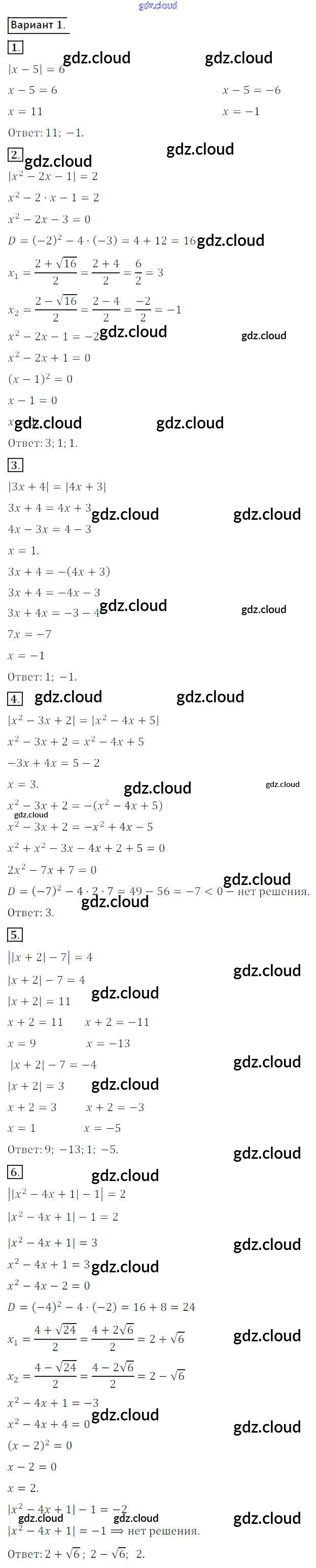 СР №14. Уравнения, содержащие модули Ответы к Самостоятельным работам по Алгебре 8 класс Дидактические материалы Потапов МГУ - школе Просвещение