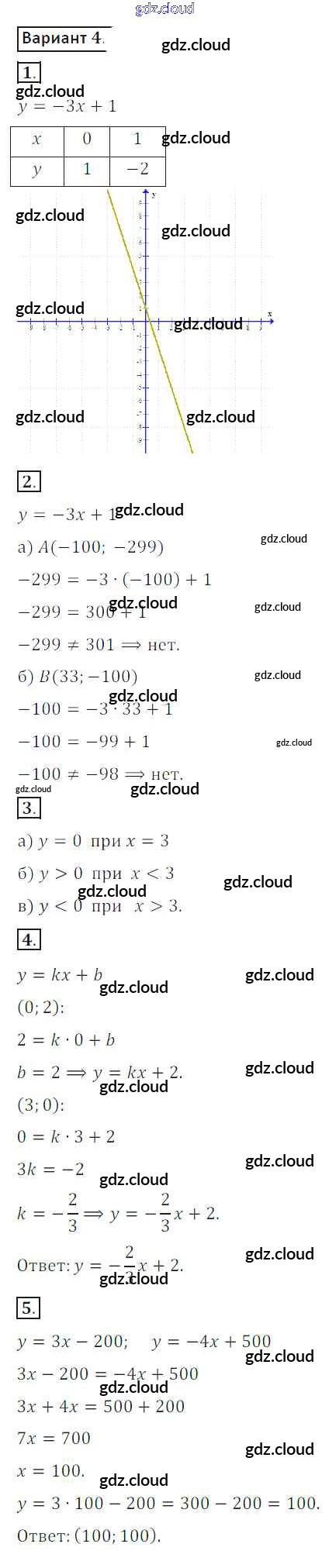 СР №15. Линейная функция Ответы к Самостоятельным работам по Алгебре 8 класс Дидактические материалы Потапов МГУ - школе Просвещение