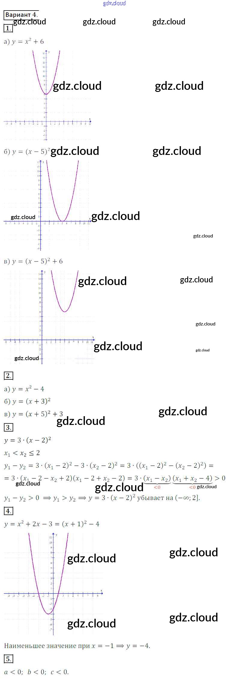 СР №17. Квадратичная функция Ответы к Самостоятельным работам по Алгебре 8 класс Дидактические материалы Потапов МГУ - школе Просвещение