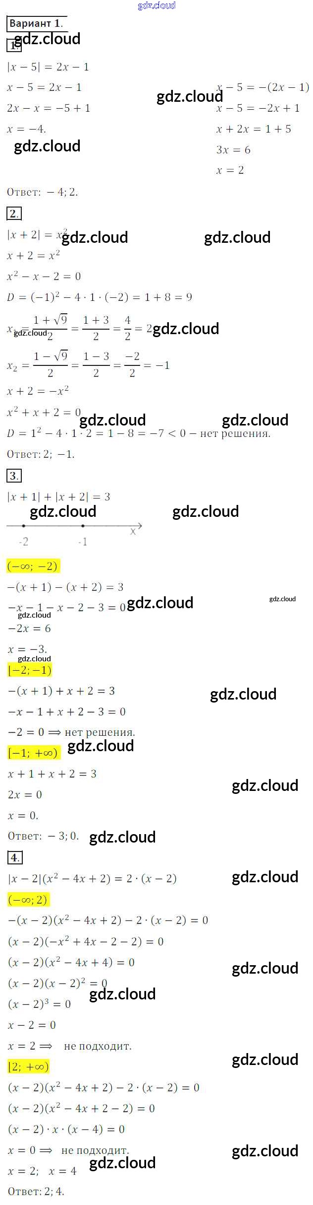СР №19. Уравнения, содержащие модули Ответы к Самостоятельным работам по Алгебре 8 класс Дидактические материалы Потапов МГУ - школе Просвещение
