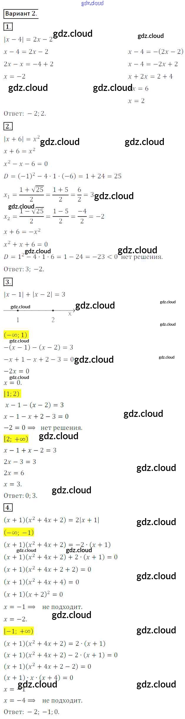 СР №19. Уравнения, содержащие модули Ответы к Самостоятельным работам по Алгебре 8 класс Дидактические материалы Потапов МГУ - школе Просвещение