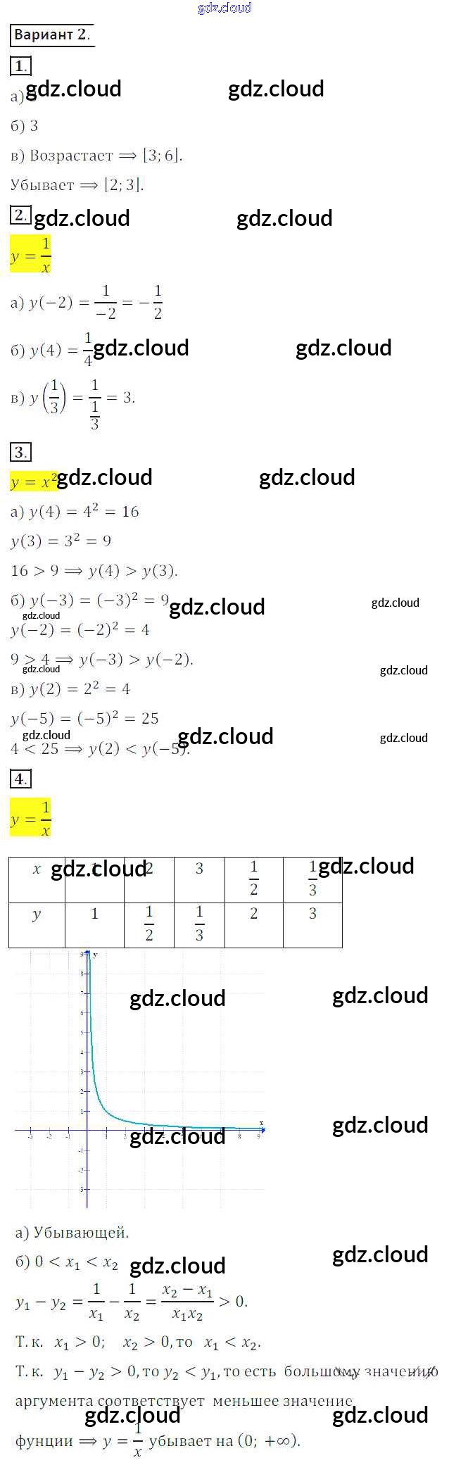 СР №2. Функция. График функции Ответы к Самостоятельным работам по Алгебре 8 класс Дидактические материалы Потапов МГУ - школе Просвещение