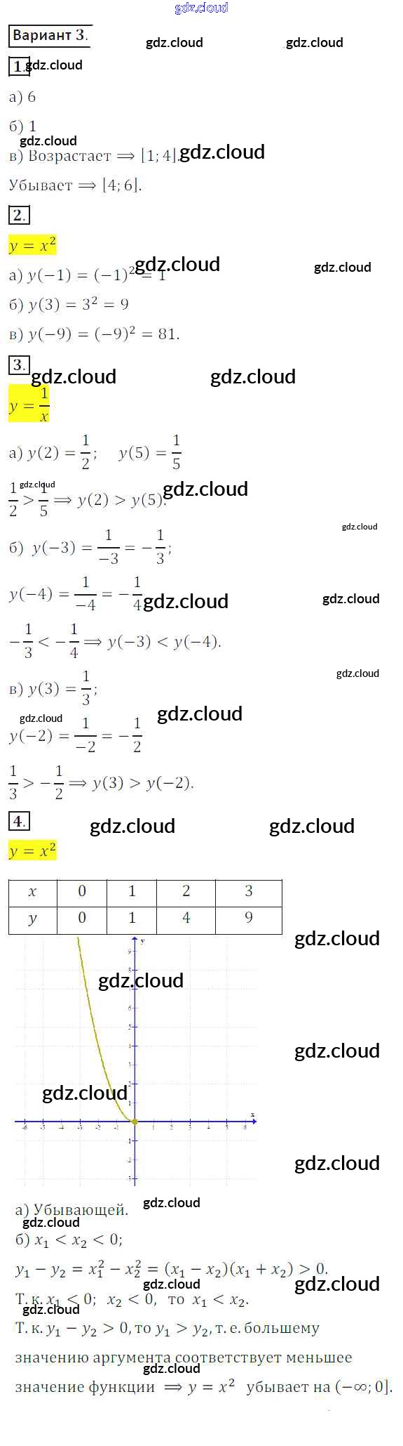 СР №2. Функция. График функции Ответы к Самостоятельным работам по Алгебре 8 класс Дидактические материалы Потапов МГУ - школе Просвещение