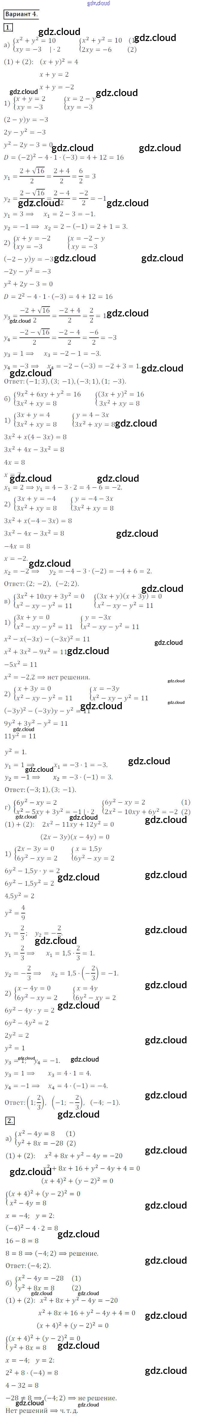 СР №22. Системы уравнений второй степени Ответы к Самостоятельным работам по Алгебре 8 класс Дидактические материалы Потапов МГУ - школе Просвещение