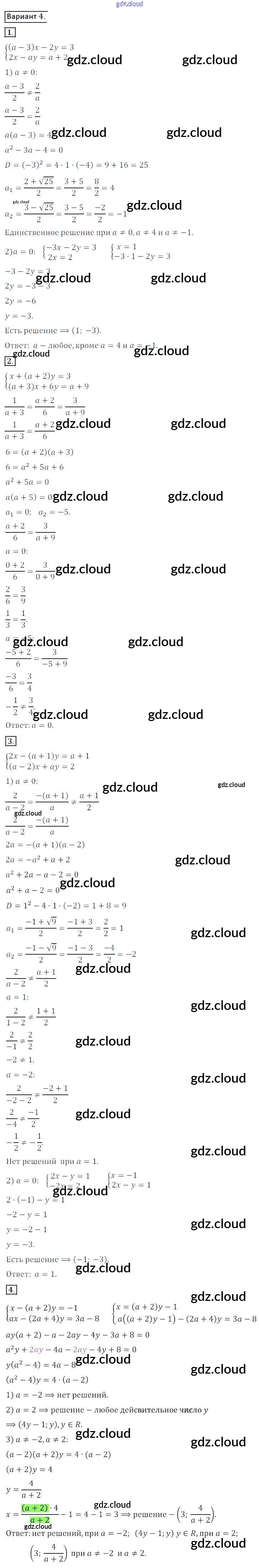 СР №24. Системы линейных уравнений с параметром Ответы к Самостоятельным работам по Алгебре 8 класс Дидактические материалы Потапов МГУ - школе Просвещение