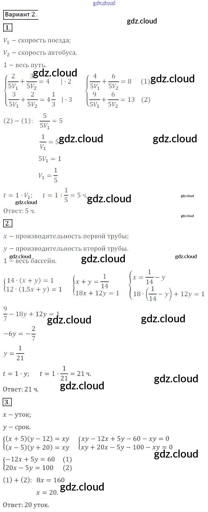 СР №25. Решение задач при помощи систем уравнений Ответы к Самостоятельным работам по Алгебре 8 класс Дидактические материалы Потапов МГУ - школе Просвещение