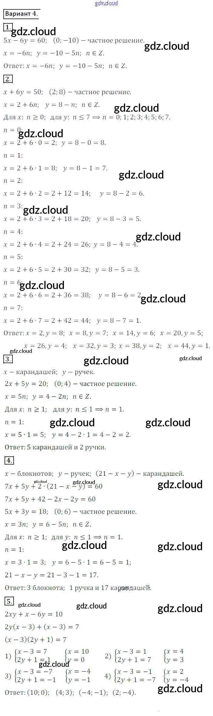 СР №26. Решение уравнений в целых числах Ответы к Самостоятельным работам по Алгебре 8 класс Дидактические материалы Потапов МГУ - школе Просвещение