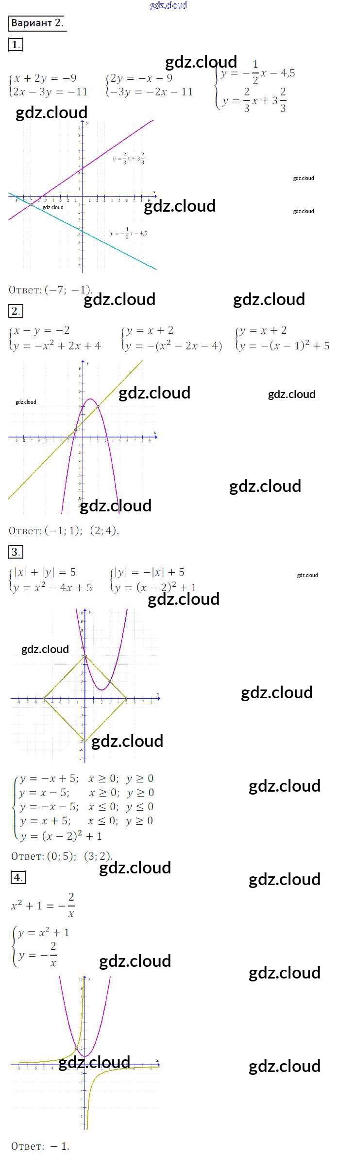 СР №27. Графический способ решения систем уравнений Ответы к Самостоятельным работам по Алгебре 8 класс Дидактические материалы Потапов МГУ - школе Просвещение