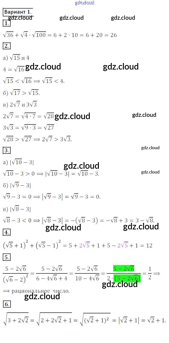 СР №3. Квадратный корень из числа Ответы к Самостоятельным работам по Алгебре 8 класс Дидактические материалы Потапов МГУ - школе Просвещение