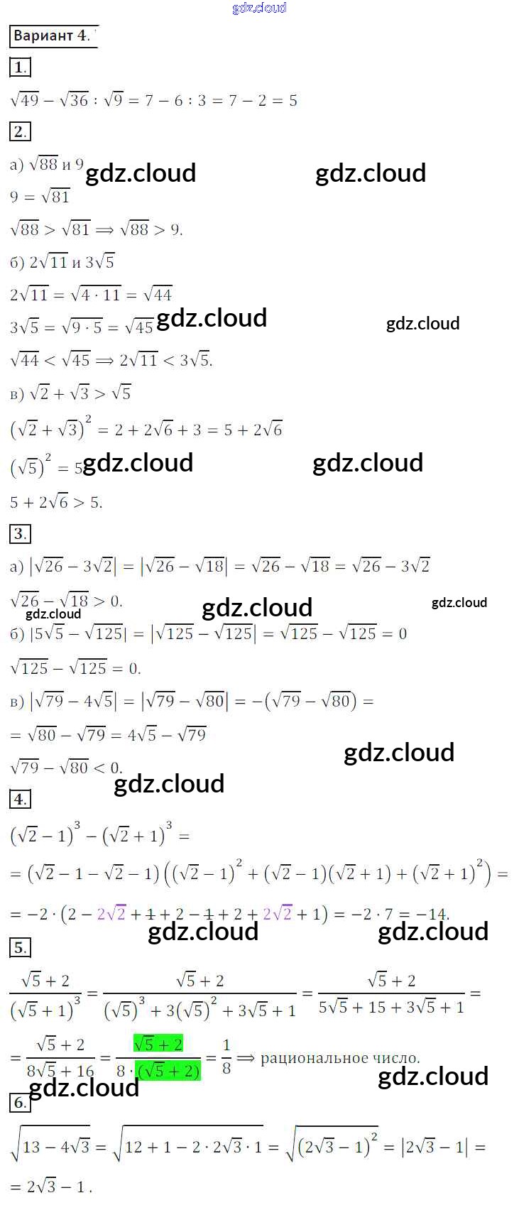 Ответ на задание вариант 4 Дидактические материалы Алгебра за 8 (восьмой) класс Потапов, Шевкин МГУ - школе 2017