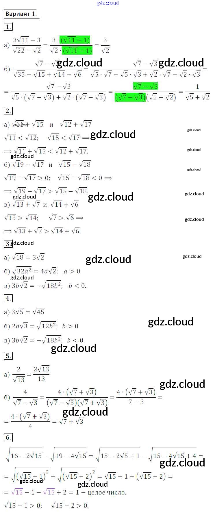 СР №4. Преобразование выражений, содержащих квадратные корни Ответы к Самостоятельным работам по Алгебре 8 класс Дидактические материалы Потапов МГУ - школе Просвещение