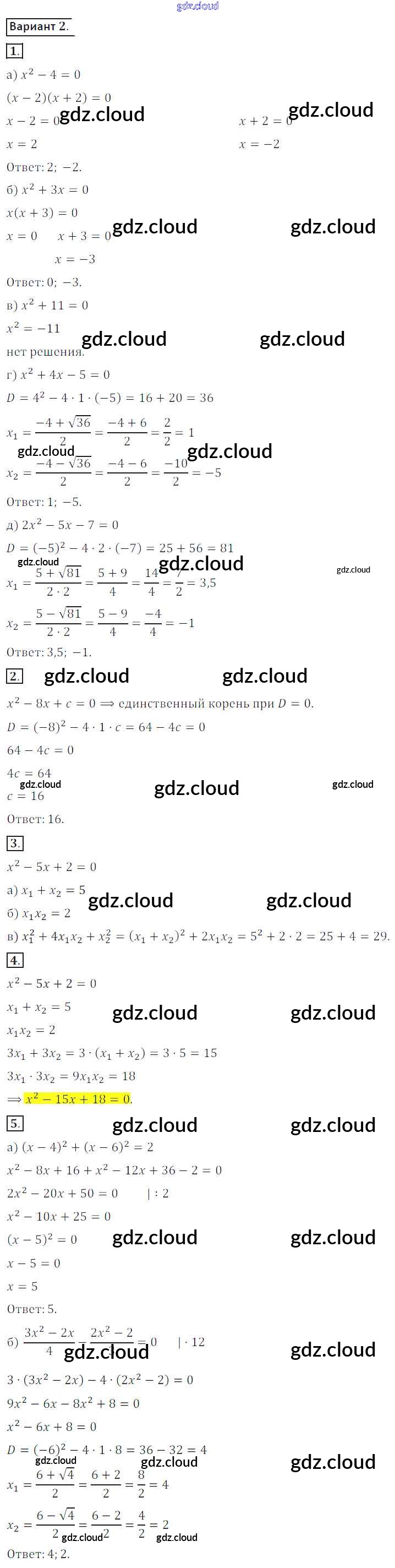 Ответ на задание вариант 2 Дидактические материалы Алгебра за 8 (восьмой) класс Потапов, Шевкин МГУ - школе 2017