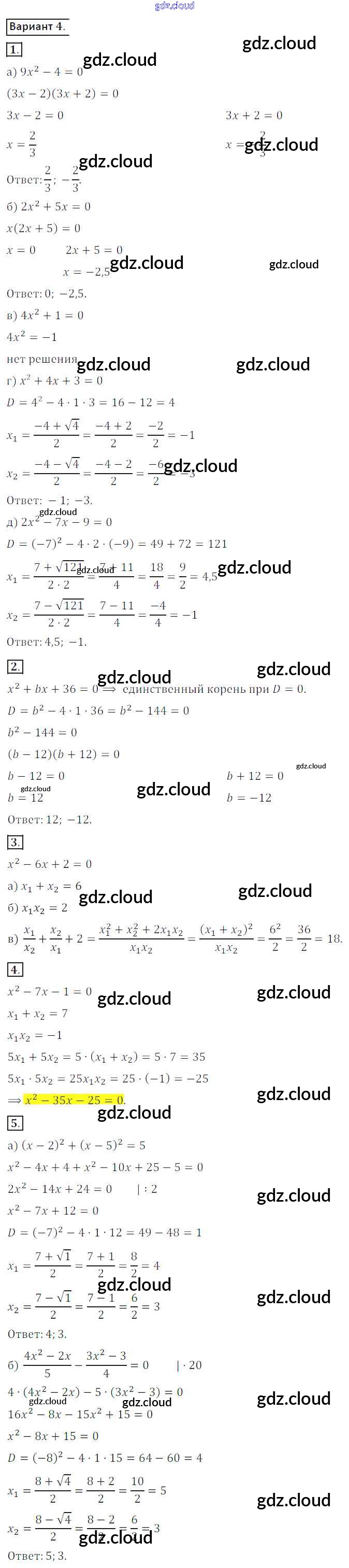 Ответ на задание вариант 4 Дидактические материалы Алгебра за 8 (восьмой) класс Потапов, Шевкин МГУ - школе 2017