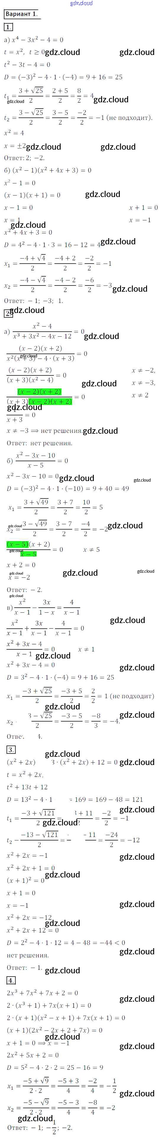 СР №8. Рациональные уравнения Ответы к Самостоятельным работам по Алгебре 8 класс Дидактические материалы Потапов МГУ - школе Просвещение
