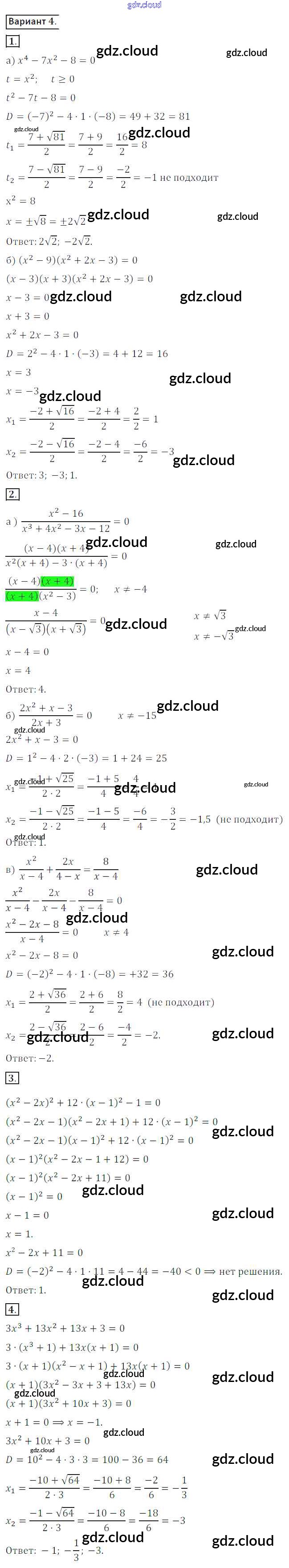 Ответ на задание вариант 4 Дидактические материалы Алгебра за 8 (восьмой) класс Потапов, Шевкин МГУ - школе 2017