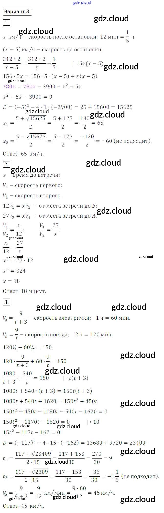 СР №9. Решение задач при помощи рациональных уравнений Ответы к Самостоятельным работам по Алгебре 8 класс Дидактические материалы Потапов МГУ - школе Просвещение