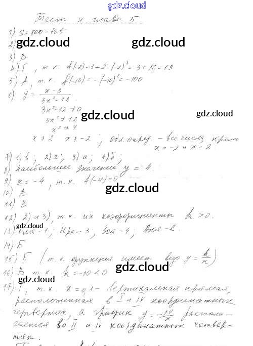 Ответ на задание тест к главе 5 Учебник Алгебра за 8 (восьмой) класс Дорофеев, Суворова, Бунимович 2014 ФГОС онлайн и без номера телефона.