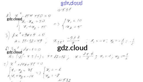 Ответ на задание 531 Учебник Алгебра за 8 (восьмой) класс Дорофеев, Суворова, Бунимович 2014