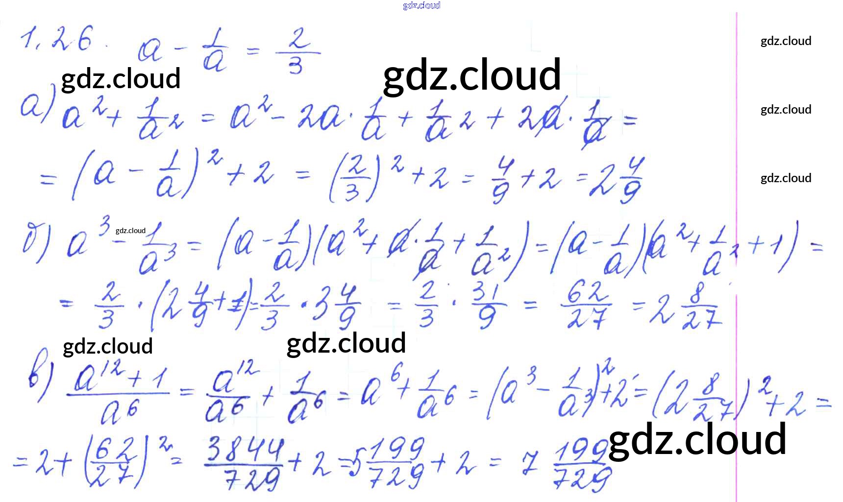 Ответ на задание 1.26 Сборник задач Алгебра за 8 (восьмой) класс Галицкий, Гольдман, Звавич 2019