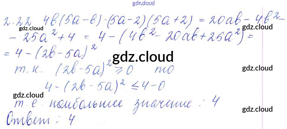 Ответ на задание 2.22 Сборник задач Алгебра за 8 (восьмой) класс Галицкий, Гольдман, Звавич 2019 ФГОС онлайн и без номера телефона.