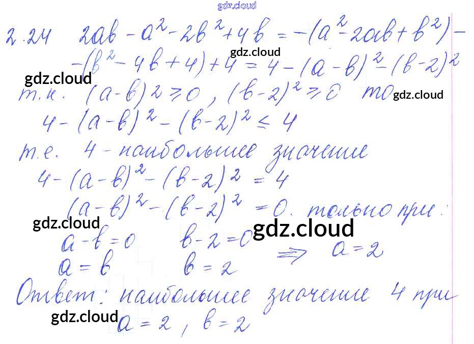 Ответ на задание 2.24 Сборник задач Алгебра за 8 (восьмой) класс Галицкий, Гольдман, Звавич 2019 ФГОС онлайн и без номера телефона.