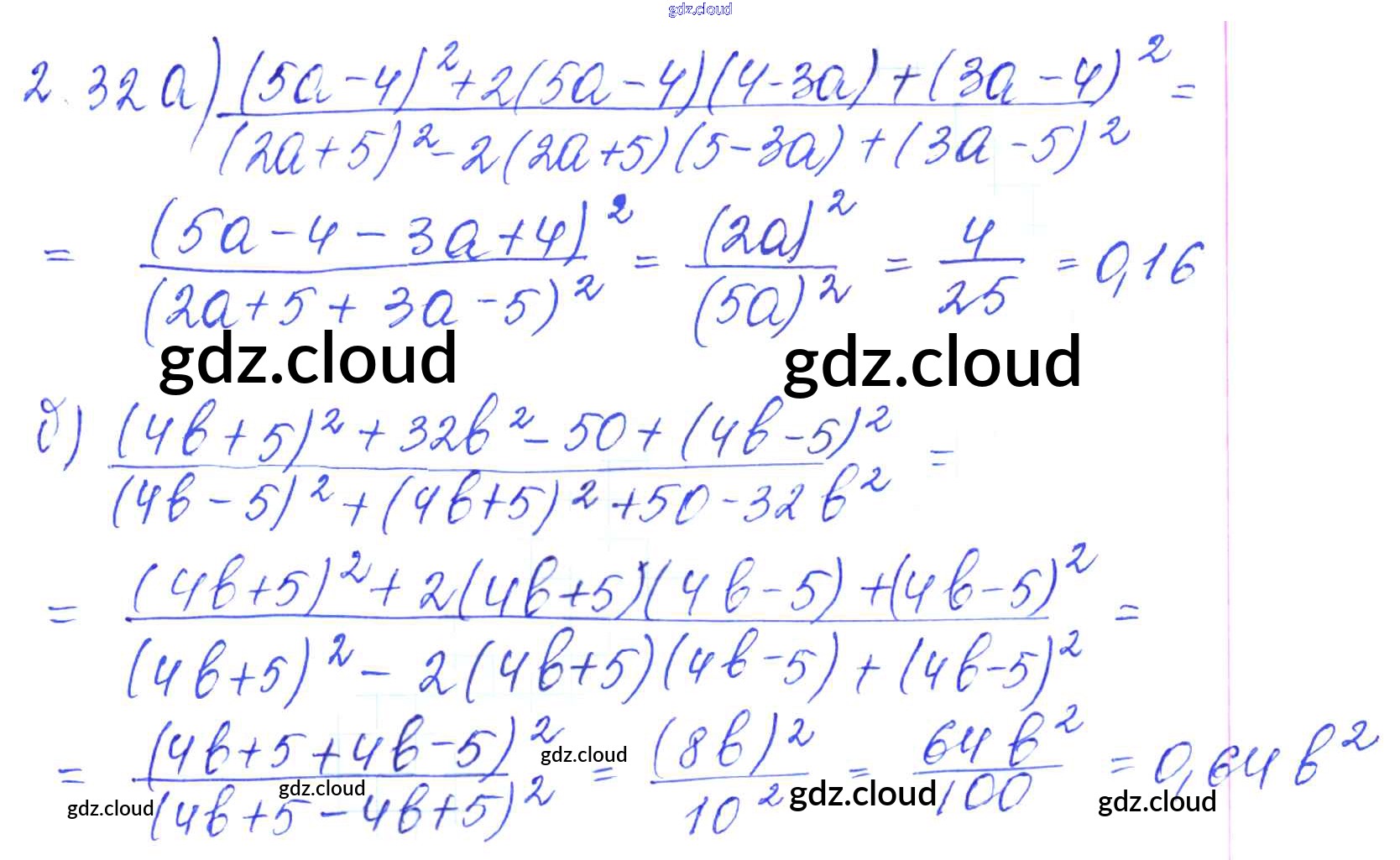 Ответ на задание 2.32 Сборник задач Алгебра за 8 (восьмой) класс Галицкий, Гольдман, Звавич 2019 ФГОС онлайн и без номера телефона.