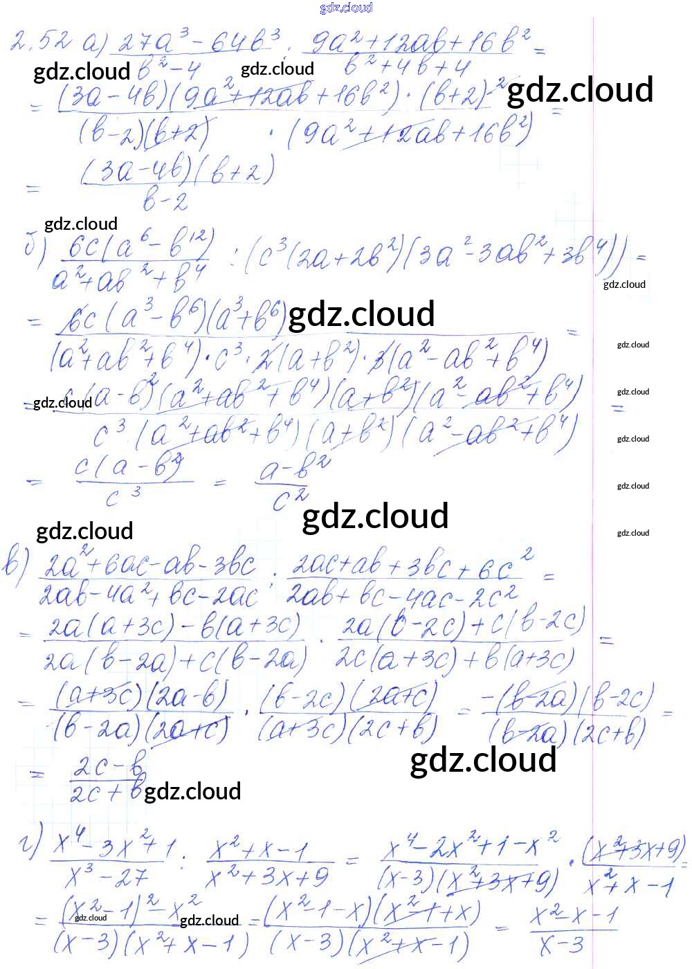 Ответ на задание 2.52 Сборник задач Алгебра за 8 (восьмой) класс Галицкий, Гольдман, Звавич 2019 ФГОС онлайн и без номера телефона.