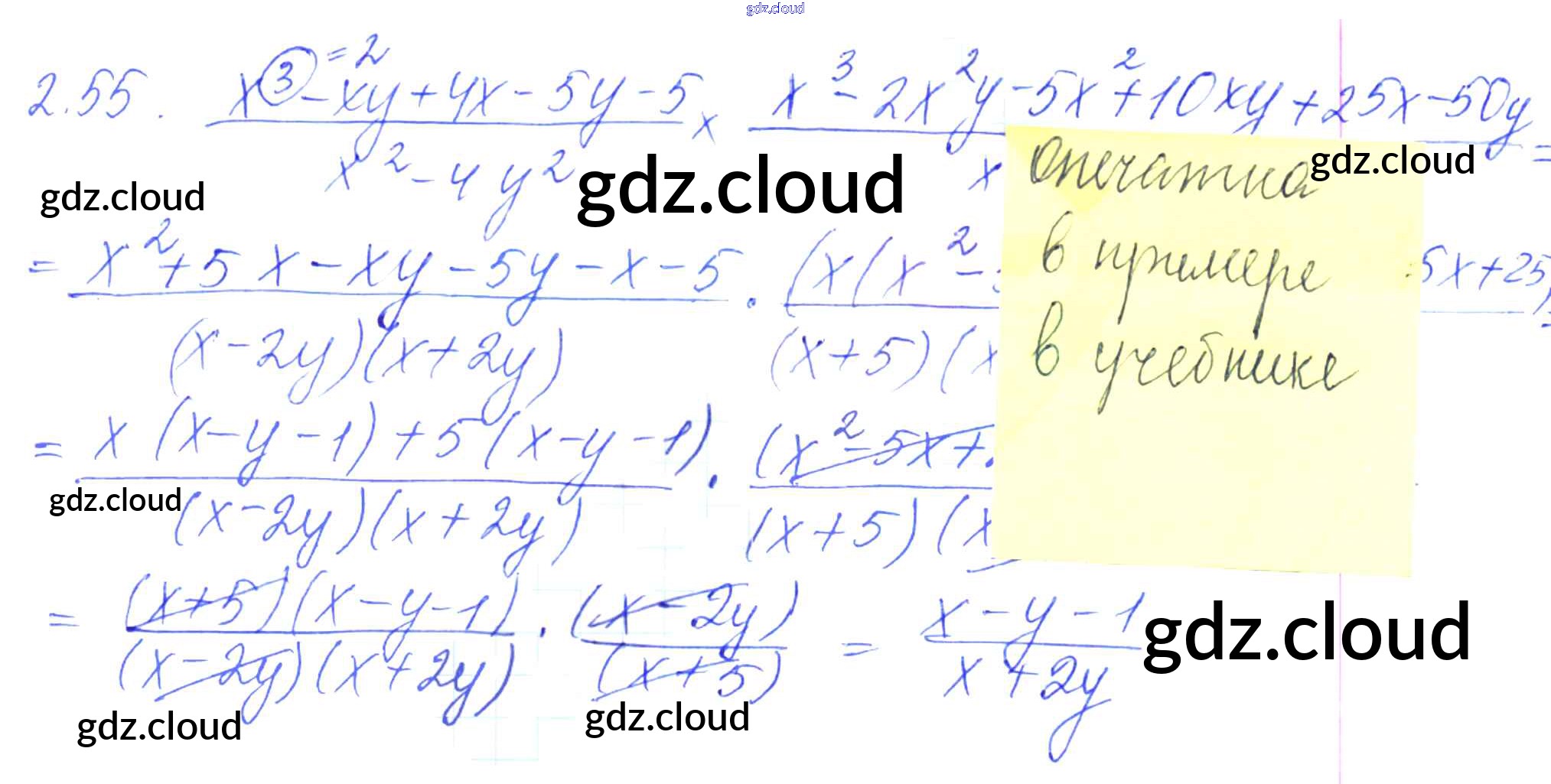 Ответ на задание 2.55 Сборник задач Алгебра за 8 (восьмой) класс Галицкий, Гольдман, Звавич 2019 ФГОС онлайн и без номера телефона.