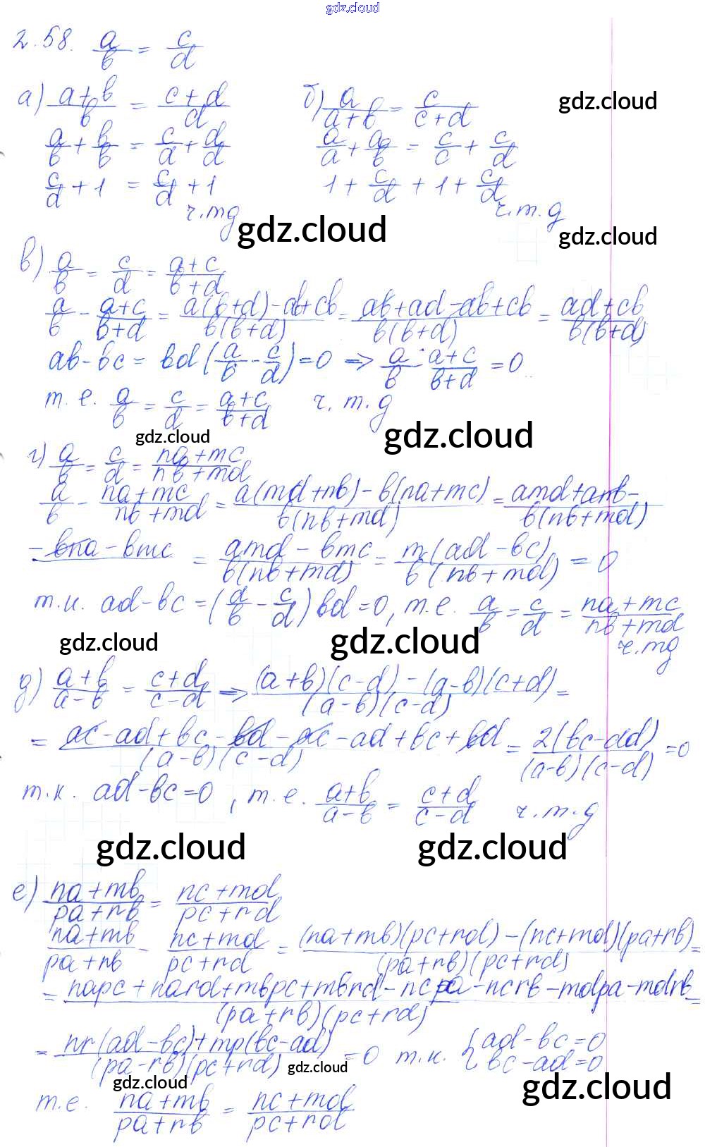 Ответ на задание 2.58 Сборник задач Алгебра за 8 (восьмой) класс Галицкий, Гольдман, Звавич 2019 ФГОС онлайн и без номера телефона.
