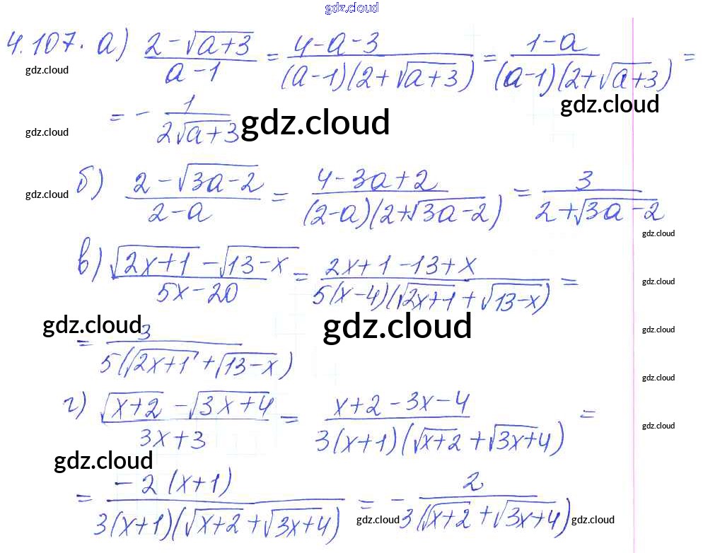 Ответ на задание 4.107 Сборник задач Алгебра за 8 (восьмой) класс Галицкий, Гольдман, Звавич 2019 ФГОС онлайн и без номера телефона.