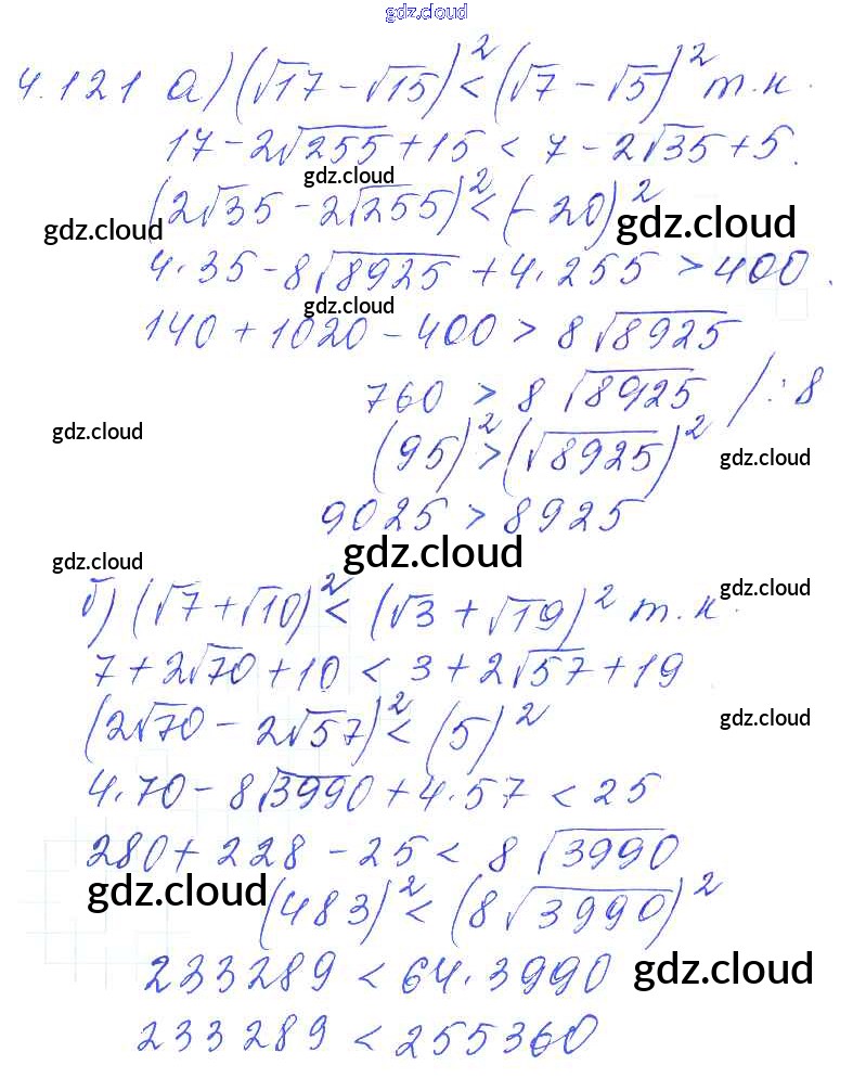 Ответ на задание 4.121 Сборник задач Алгебра за 8 (восьмой) класс Галицкий, Гольдман, Звавич 2019 ФГОС онлайн и без номера телефона.