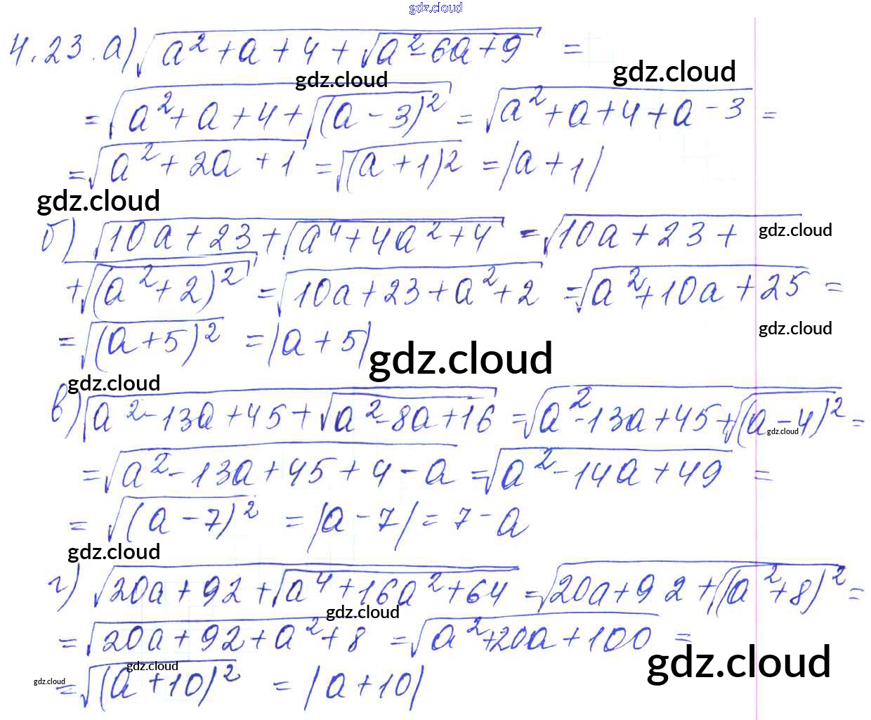 Ответ на задание 4.23 Сборник задач Алгебра за 8 (восьмой) класс Галицкий, Гольдман, Звавич 2019 ФГОС онлайн и без номера телефона.