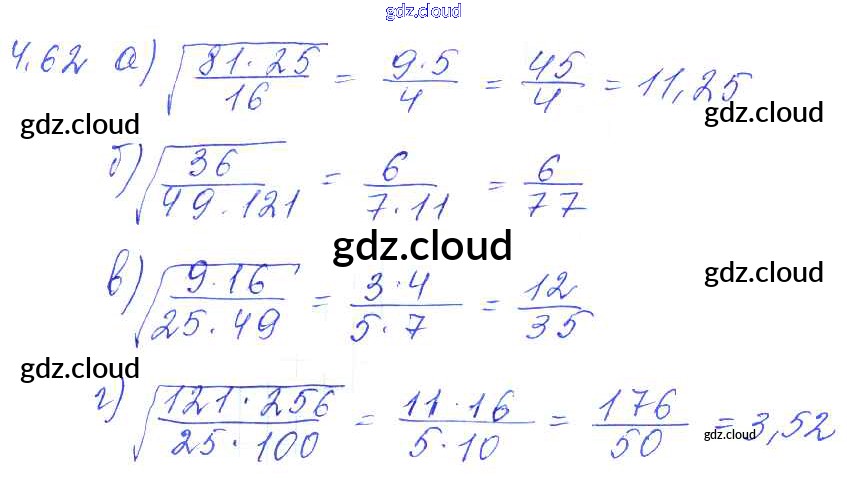 Ответ на задание 4.62 Сборник задач Алгебра за 8 (восьмой) класс Галицкий, Гольдман, Звавич 2019 ФГОС онлайн и без номера телефона.