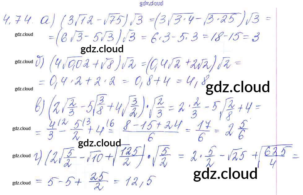 Ответ на задание 4.74 Сборник задач Алгебра за 8 (восьмой) класс Галицкий, Гольдман, Звавич 2019 ФГОС онлайн и без номера телефона.