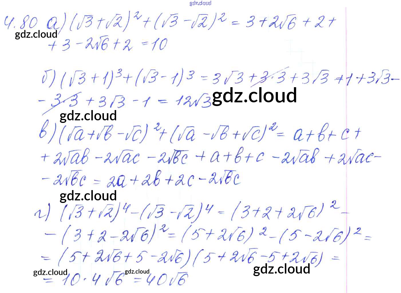Ответ на задание 4.80 Сборник задач Алгебра за 8 (восьмой) класс Галицкий, Гольдман, Звавич 2019 ФГОС онлайн и без номера телефона.