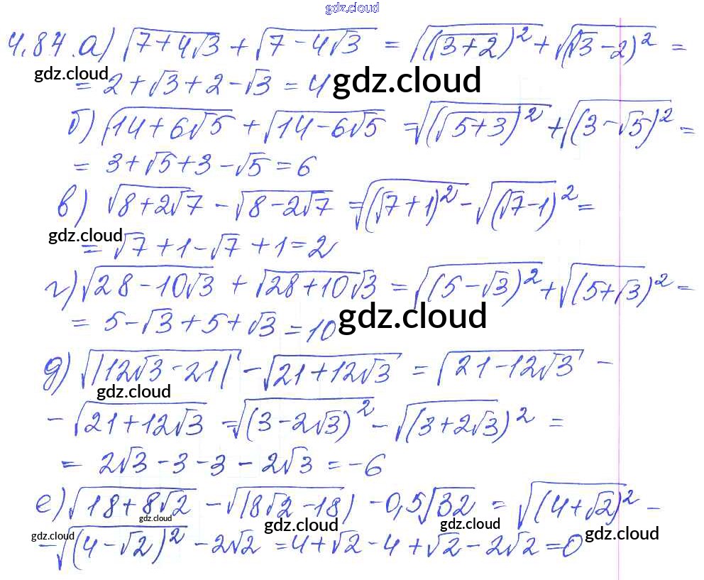 Ответ на задание 4.84 Сборник задач Алгебра за 8 (восьмой) класс Галицкий, Гольдман, Звавич 2019 ФГОС онлайн и без номера телефона.