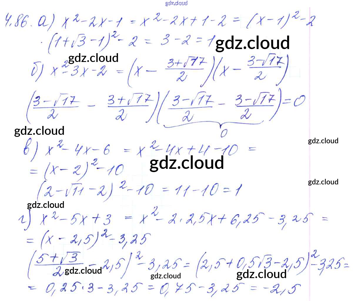 Ответ на задание 4.86 Сборник задач Алгебра за 8 (восьмой) класс Галицкий, Гольдман, Звавич 2019 ФГОС онлайн и без номера телефона.