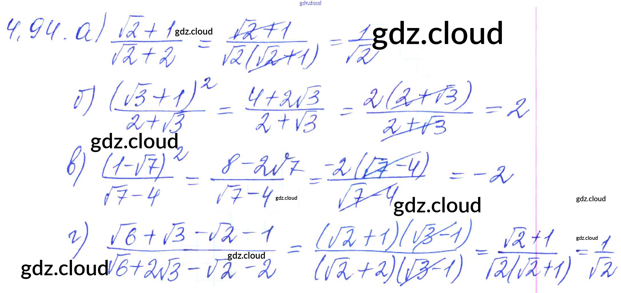 Ответ на задание 4.94 Сборник задач Алгебра за 8 (восьмой) класс Галицкий, Гольдман, Звавич 2019 ФГОС онлайн и без номера телефона.