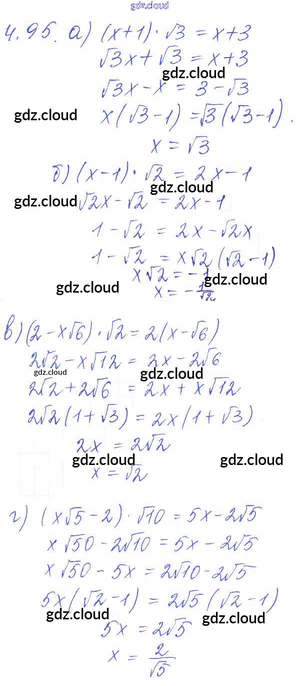 Ответ на задание 4.95 Сборник задач Алгебра за 8 (восьмой) класс Галицкий, Гольдман, Звавич 2019 ФГОС онлайн и без номера телефона.
