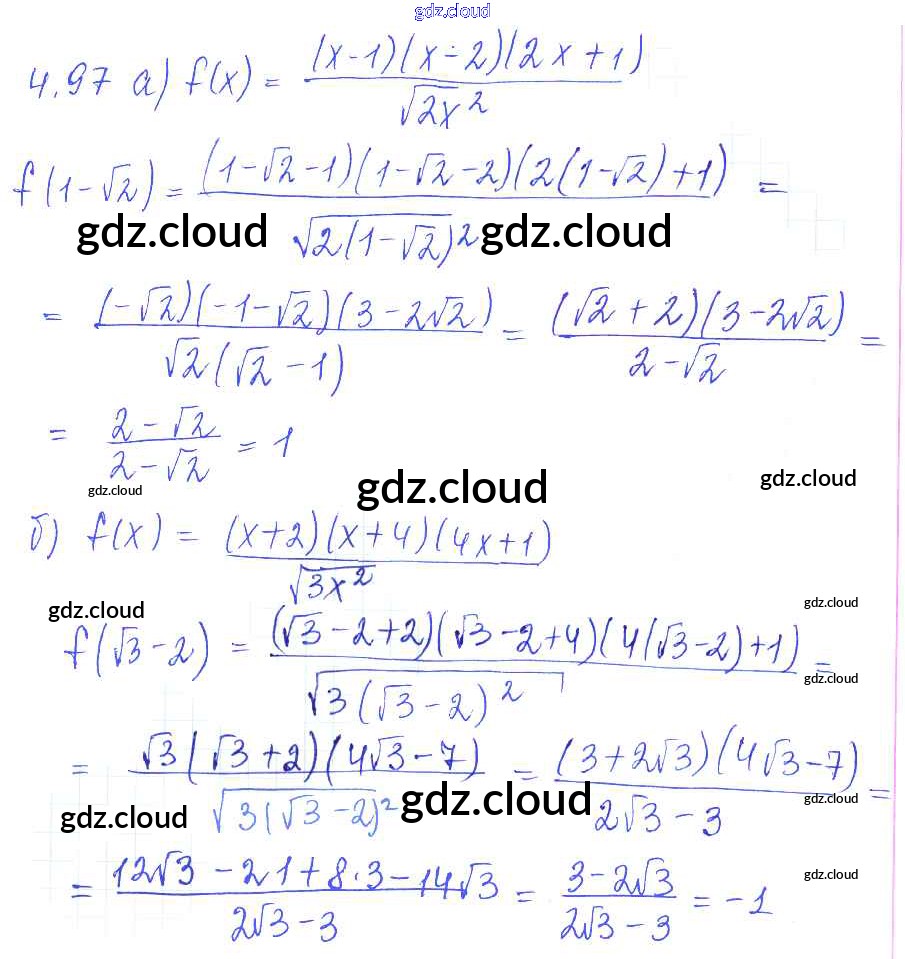 Ответ на задание 4.97 Сборник задач Алгебра за 8 (восьмой) класс Галицкий, Гольдман, Звавич 2019 ФГОС онлайн и без номера телефона.