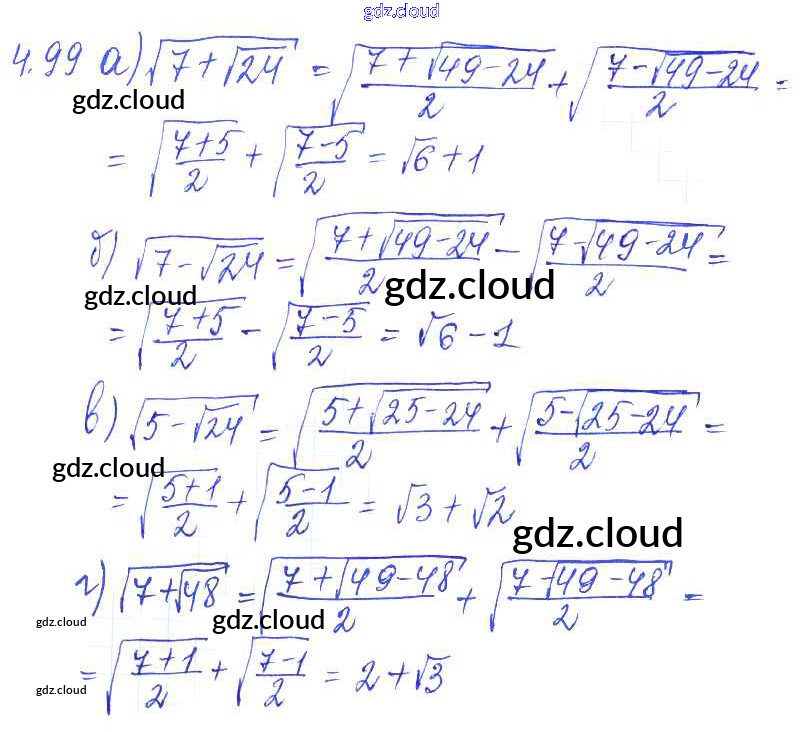 Ответ на задание 4.99 Сборник задач Алгебра за 8 (восьмой) класс Галицкий, Гольдман, Звавич 2019 ФГОС онлайн и без номера телефона.