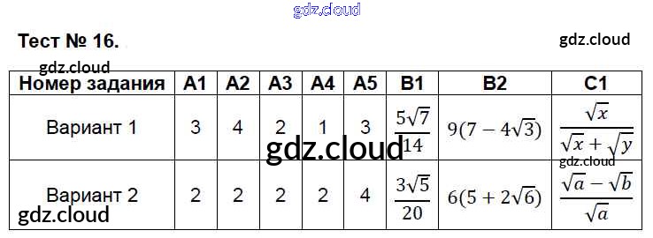 Ответы к Тестам по Алгебре 8 класс Контрольно-измерительные материалы (КИМ) Черноруцкий ВАКО