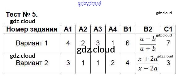Ответ на задание 5 Контрольно-измерительные материалы (КИМ) Алгебра за 8 (восьмой) класс Черноруцкий 2018 ФГОС онлайн и без номера телефона.