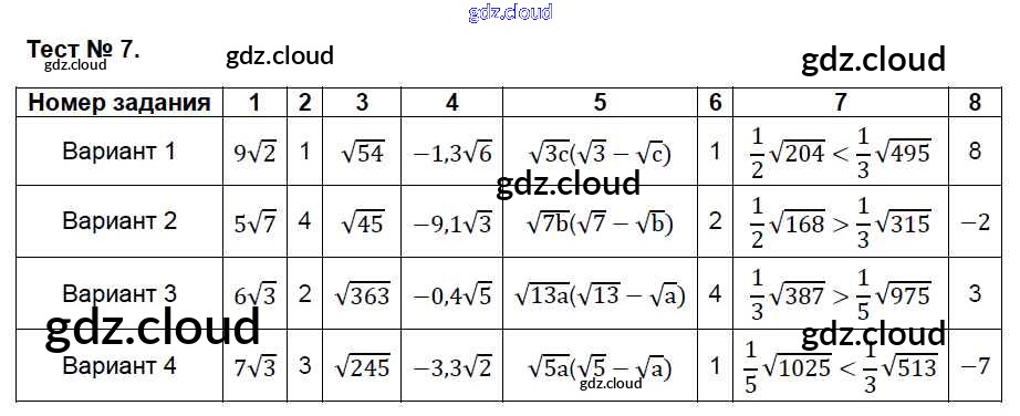 Ответ на задание 7 Контрольно-измерительные материалы (КИМ) Алгебра за 8 (восьмой) класс Глазков, Гаиашвили, Ахременкова 2014