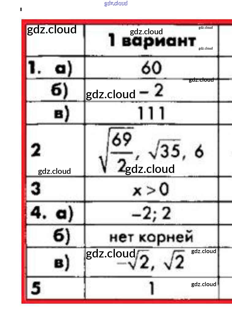 Ответы к Контрольным работам по Алгебре 8 класс Контрольно-измерительные материалы (КИМ) Глазков Экзамен